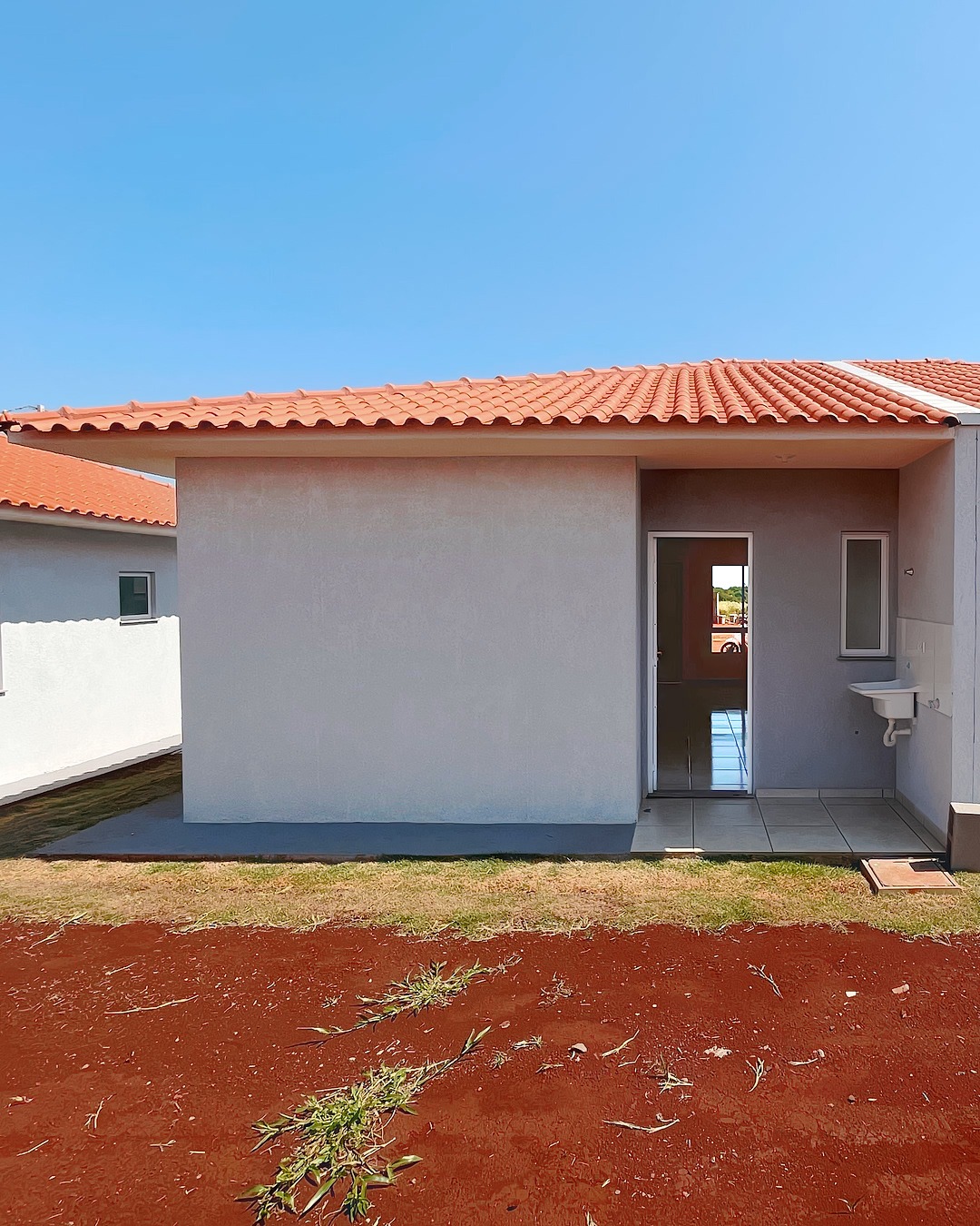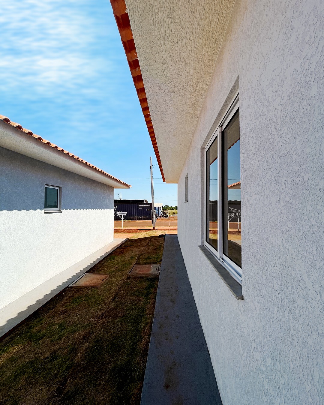 São casas de lajes, com 2 quartos, sala, cozinha, banheiro e lavanderia coberta. As casas possuem um corredor lateral que lhe dá mais liberdade no seu imóvel. Os terrenos são de 150m2 e a casa de 45m2.